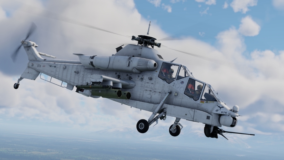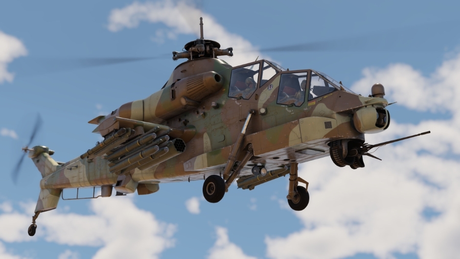The Rooivalk Mk1F CSH[wiki.warthunder.com] is an advanced modification of the Rooivalk, featuring improved optics, avionics, and defensive systems. It is a versatile attack helicopter, equipped with a thermal imager and fire suppression systems, and is ready to defend against enemy attacks with flares. It is armed with a 20 mm cannon and six hardpoints capable of mounting Mistral air-to-air missiles, ZT-6 Mokopa guided missiles, and unguided FZ49 HEAT rockets.