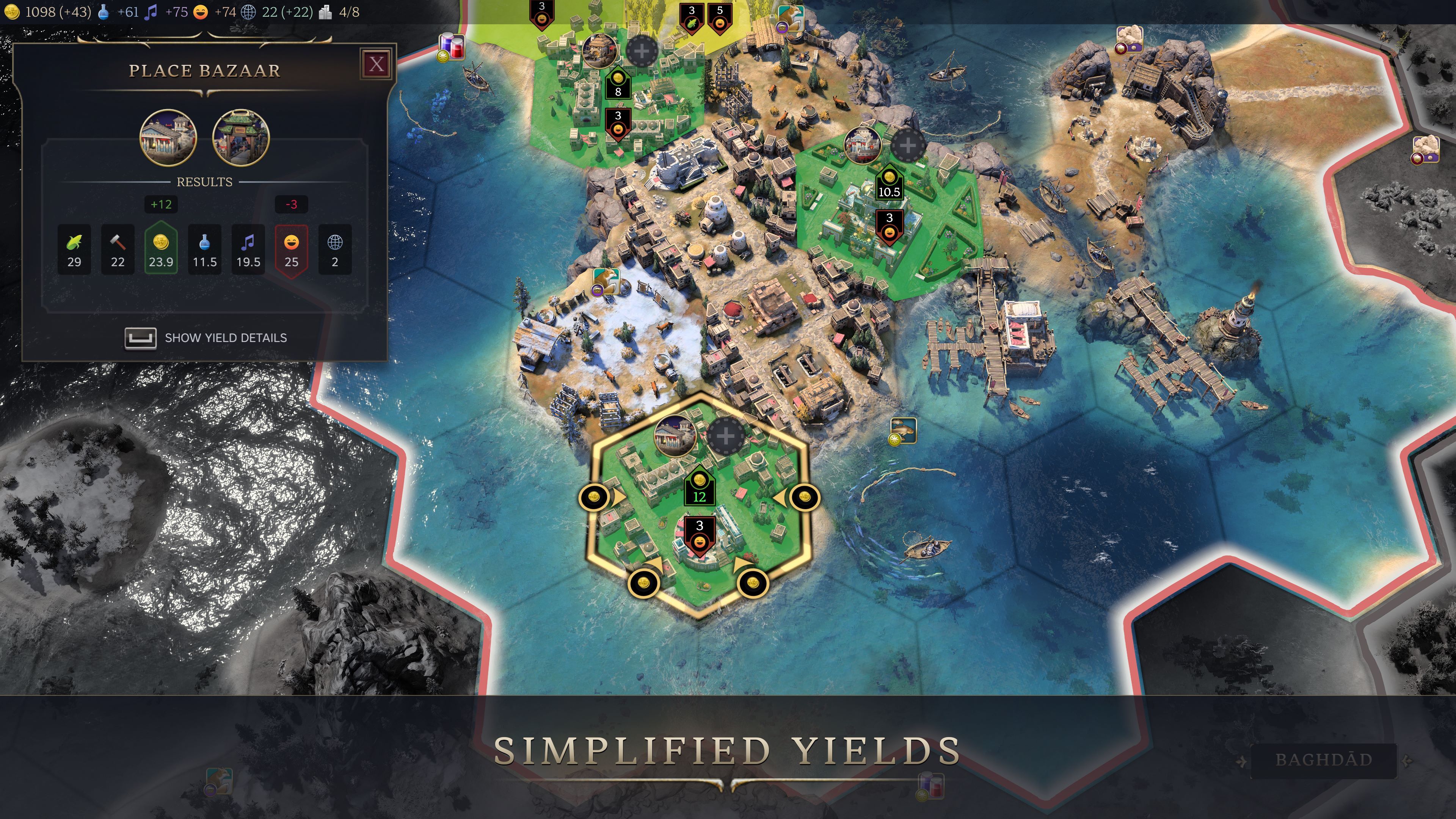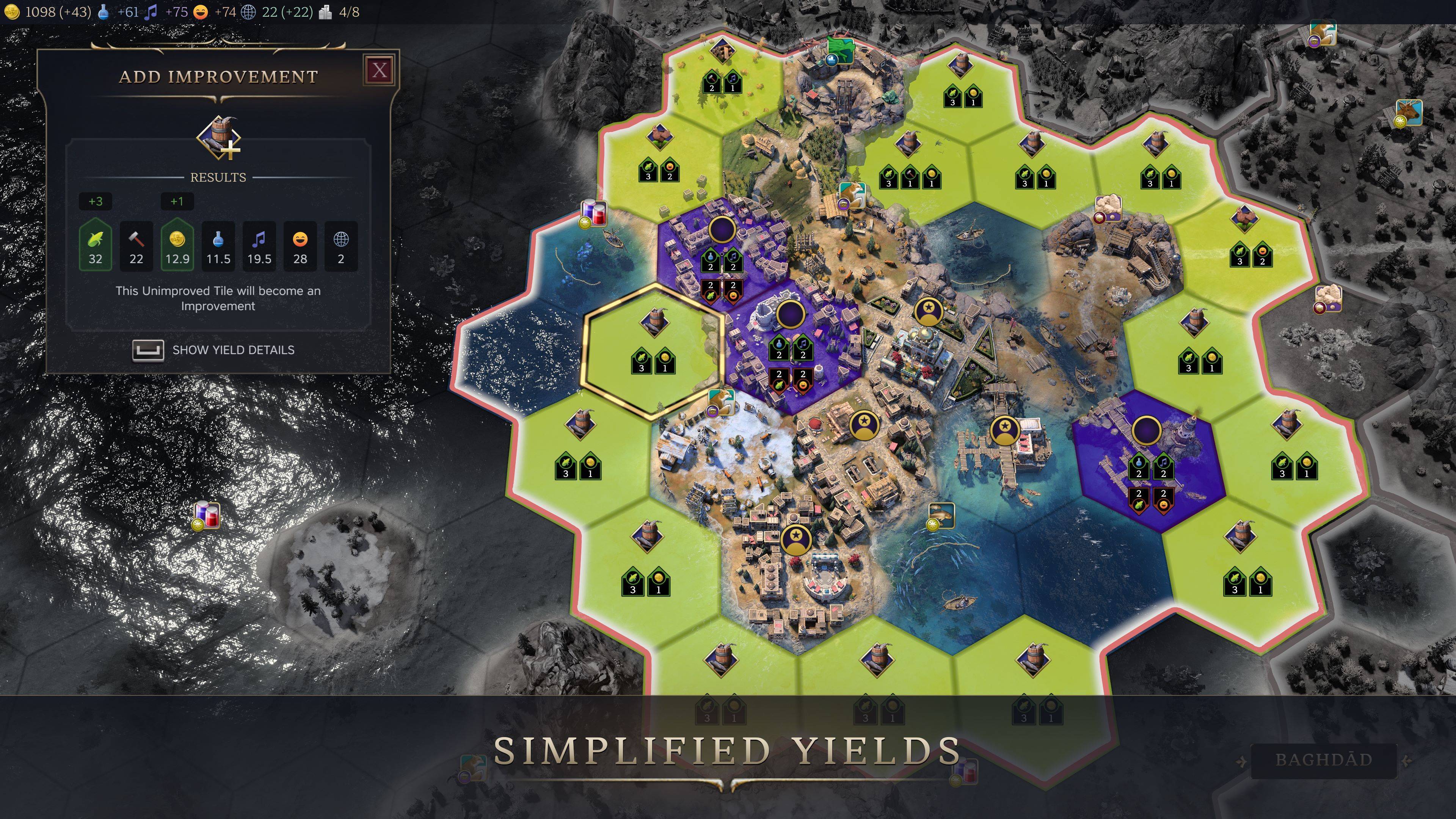 New arrow visuals for Adjacency clearly showing what yield types you’re gaining and from where.