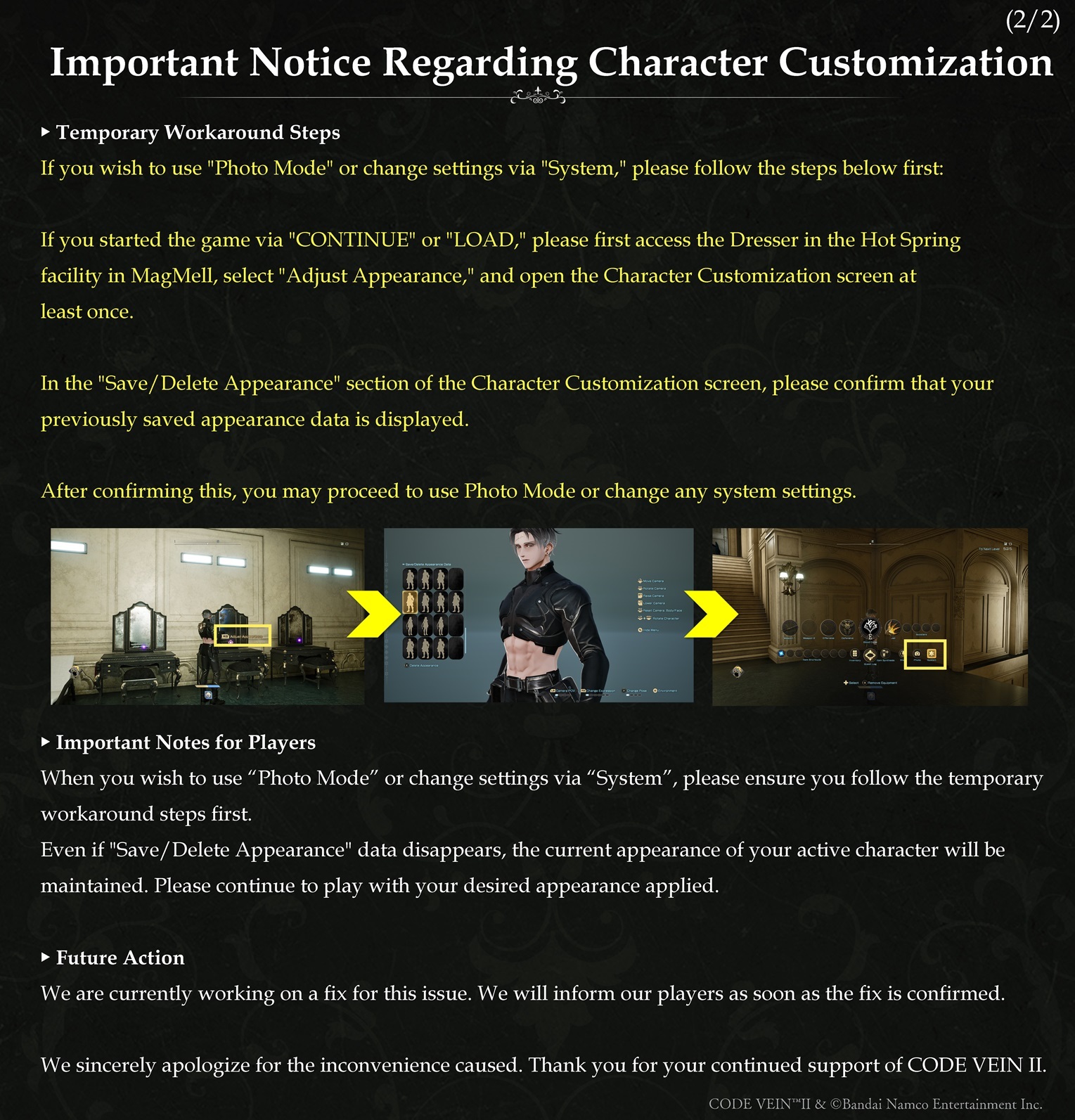 Dear CODE VEIN II Players,