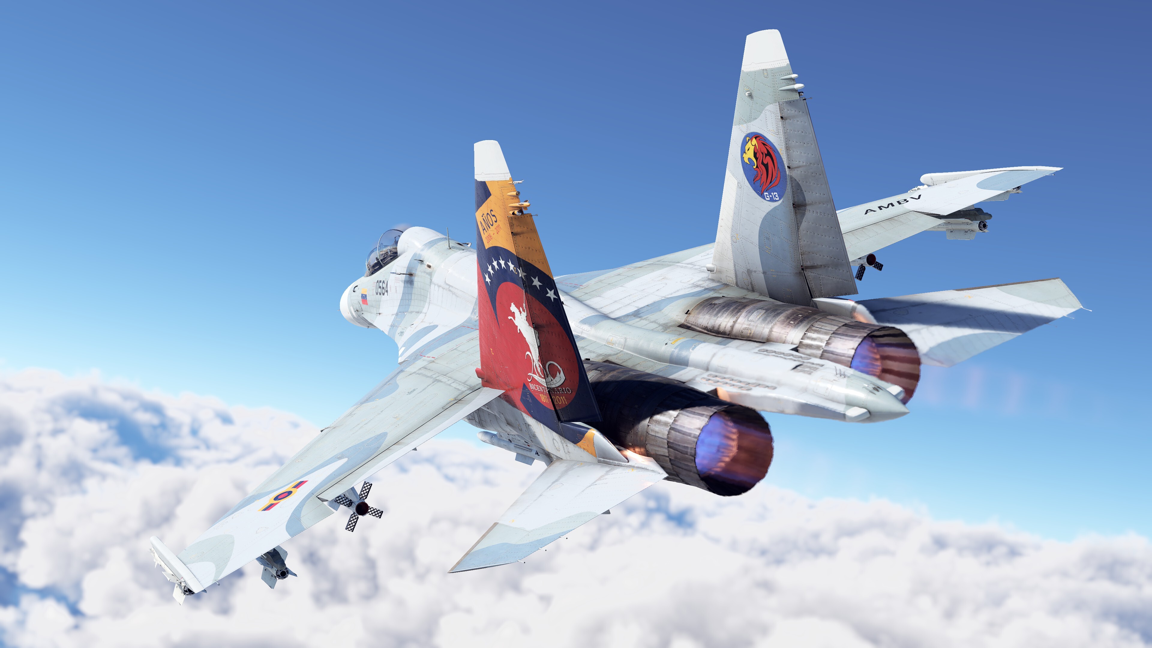 When you open up the Secondary Weapons menu for this aircraft, you’ll probably feel overwhelmed due to the huge number of ready-made weapon combinations for any mission or play style, and that’s not counting the presets that you can create yourself! This Venezuelan modification differs from the older Su aircraft in its slightly different armament composition. In addition to the well-proven R-73 short-range missiles, R-27R semi-active radar homing missiles with a datalink, and jamming-resistant R-27ET missiles (all in export versions) for air combat, you’ll also be able to use the RVV-AE (which is the export version of the R-77) with active radar homing seeker.