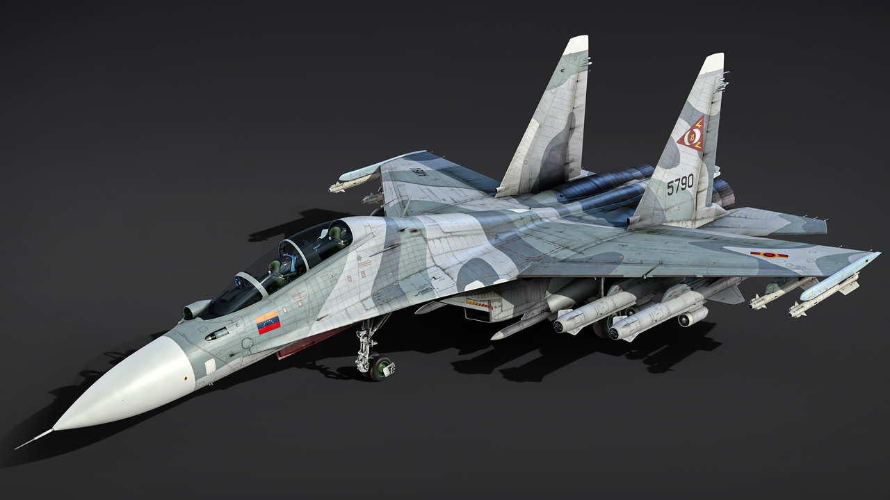The Venezuelan Su-30MK2 AMV is in many ways similar to the top-tier Sukhoi aircraft available in the Soviet/Russian aviation research tree already. It’s a heavy aircraft with powerful engines, 12 weapon hardpoints, a payload of over 8000 kg, all while being highly maneuverable and capable of reaching speeds exceeding Mach 2 with a combat load. The Su-30MK2 AMV has excellent avionics and equipment too! It features a good radar, a “Rita” voice warning system, a thermal imager and night vision, a helmet-mounted display, an RWR with a target identification and as many as 96 large-caliber countermeasures!