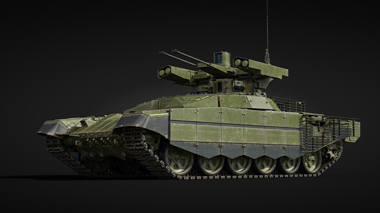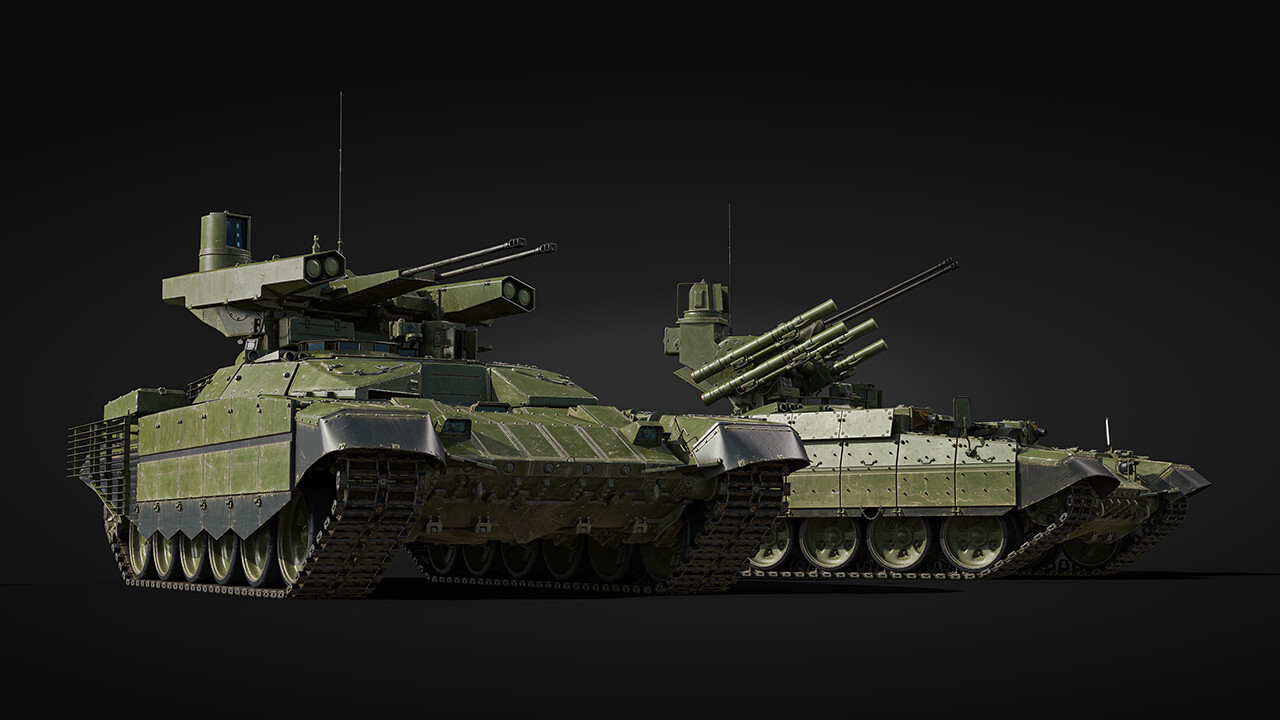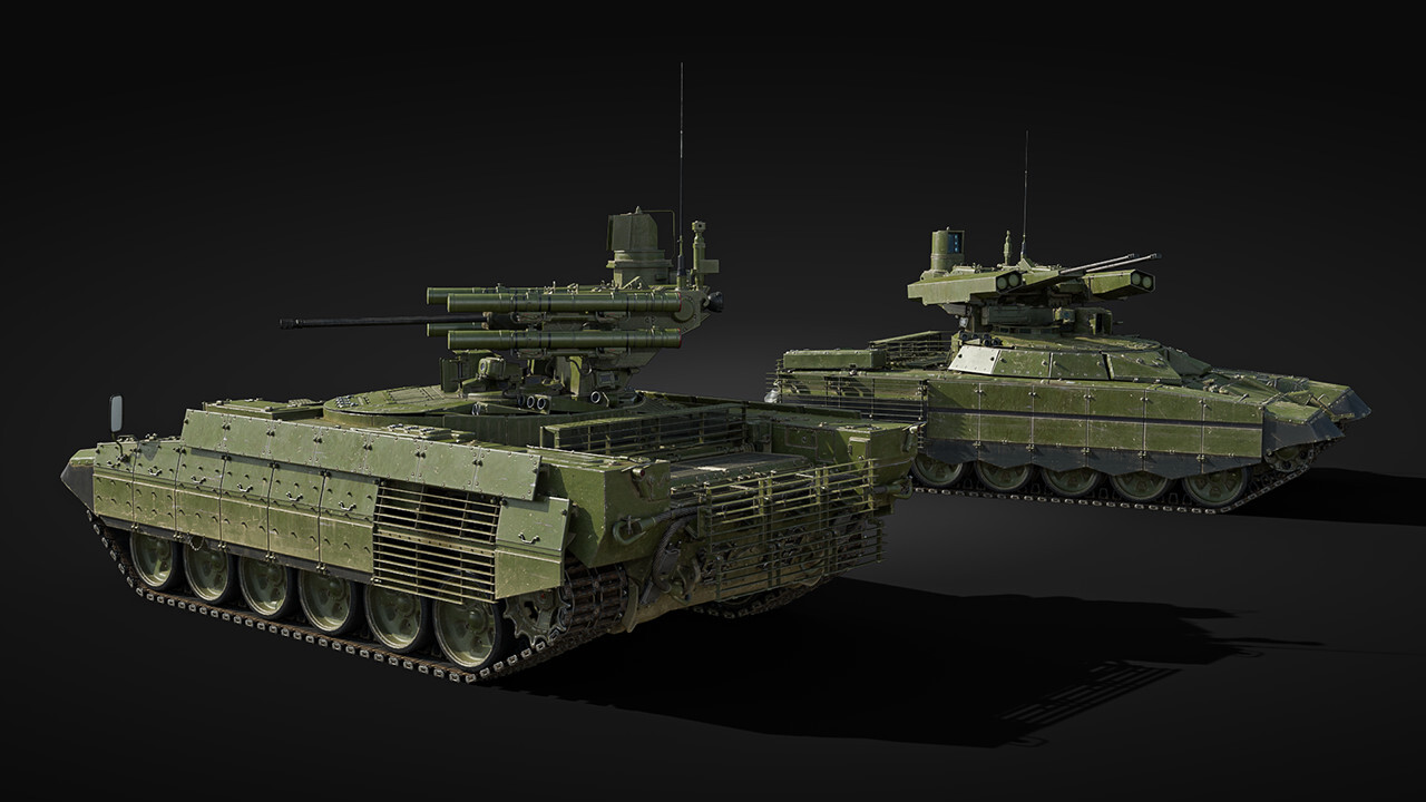 Both vehicles have smoke grenade launchers, laser rangefinders and laser warning systems, along with night vision devices and thermal imagers (only for the gunner on the BMPT, and for the gunner and commander on the BMPT-72). The primary difference between the two is the crew count, 5 on the BMPT and only 3 on the BMPT-72. The regular BMPT features the AGS automatic grenade launcher with 30 mm fragmentation grenades as part of its combat module, while the BMPT-72 receives some additional armor on the ATGM launch containers to protect against machine guns and shrapnel, as well as additional slat armor on the sides and rear protecting the engine compartment area. Both vehicles are ultimately quite similar, just with small unique advantages in different areas.