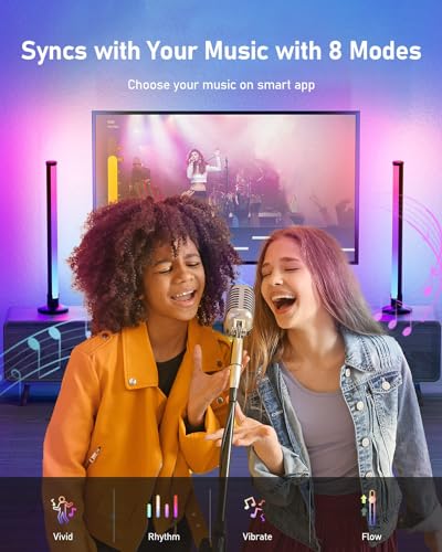 [Immersive Lighting Atmosphere] The upgraded smart light bar has length 42cm and 180° full-screen light, which greatly reduces dark corners and shadows, providing all-round lighting. With the built-in high-sensitivity sound sensor, the light will dance synchronously with the music, video and ambient sound to create an immersive sound and light space dimension, enhance your game/movie/party/dating experience.[16 Million Lighting Modes] Smart light bar uses innovative RGB technology to present a colorful light composed of 16 million colors. Each mode displays different colors and lighting effects, and easily creates the atmosphere you need through a variety of dynamic scenes, helping you to fully immerse in your art world. It is the best gift for Valentine’s Day, Christmas, New Year, and birthdays.[8 Scene Modes] Smart light bars includes 8 preset scenes, each mode displays different colors and lighting effects. A total of 213 preset dynamic modes can meet your different lighting needs and enhance your entertainment experience. Every time you close and reopen the rgb smart light bar, the RGB tube will return to the mode you set last time, and there is no need to adjust it again.[3 Control Methods] You can directly control RGB ambient lighting through the remote control or the buttons on the USB cable; you can also connect the APP and the color changing light bars through Bluetooth, and use the APP to customize the lights you want. There is no need to use HDMI cables or be restricted by other media services to enjoy synchronized lighting effects.[Easy to Set Up] RGB smart LED lamp is easy to install and set up, could be powered by any power supply with a USB interface, not limited to any living space. The product is light and has a small footprint, and can be easily moved to different positions according to your needs. It can be placed in various places such as living room, room, game hall, RV, studio, etc. to enrich the visual experience and enhance the atmosphere.Additional information