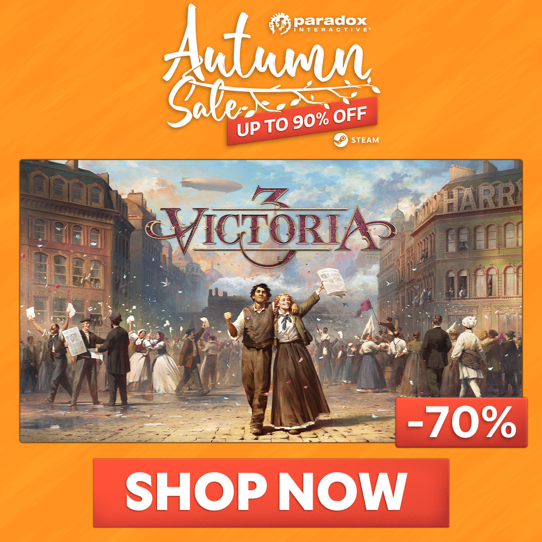 The Steam Autumn Sale extends last week’s offers, keeping Victoria 3 and select content discounted while expanding the catalogue with more deals.